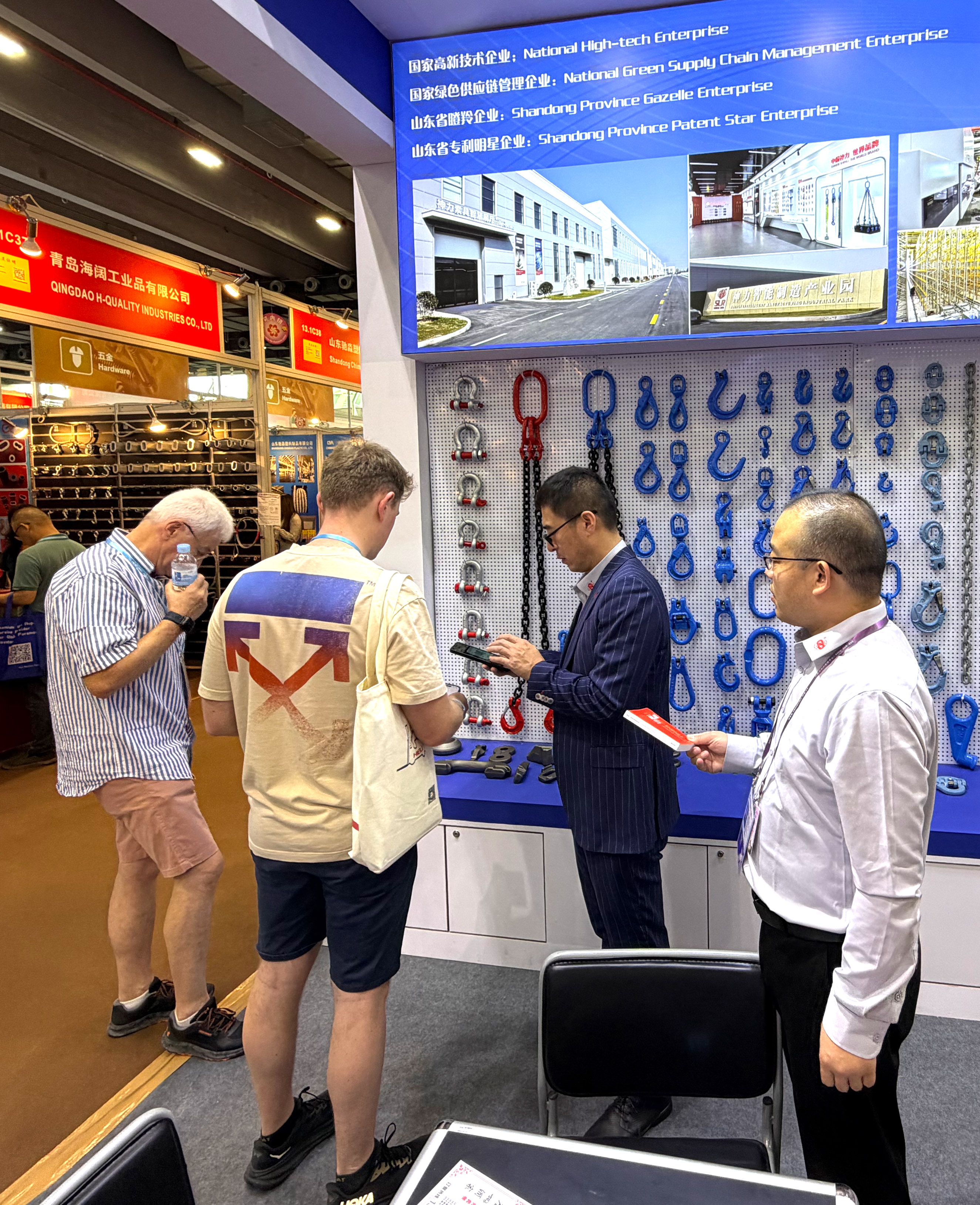 本次廣交會上,神力索具創(chuàng)新采用“制造+貿(mào)易”雙平臺聯(lián)動模式。山東神力索具有限公司帶來全產(chǎn)業(yè)鏈高端產(chǎn)品,從高強(qiáng)度起重鏈條到智能吊裝系統(tǒng),展現(xiàn)深度制造能力;從深海工程專用索具到航空航天高精度配件,每一件產(chǎn)品都凝聚著神力索具對卓越質(zhì)量的極致追求。山東神力進(jìn)出口有限公司則依托全球化營銷網(wǎng)絡(luò),實(shí)現(xiàn)“前端市場反饋”與“后端研發(fā)制造”的無縫對接。這種上下游協(xié)同的參展模式,讓客戶在現(xiàn)場即可體驗(yàn)從產(chǎn)品定制到跨境交付的一站式服務(wù)。